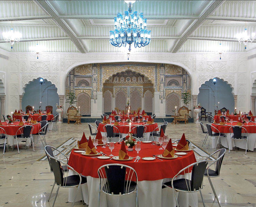 If you're looking for an elegant ballroom to host your next conference or meeting, look no further than Shiv Vilas Resort Presidential. Our ballrooms are large (9900 sq. ft.), and combine to give you an opportunity to host conferences, meetings, wedding etc. in a royal set up. Plus, our décor is charming and add a touch of luxury to any event. So whether you're hosting a small business meeting or a lavish wedding, Shiv Vilas Resort Presidential is the perfect place for you.