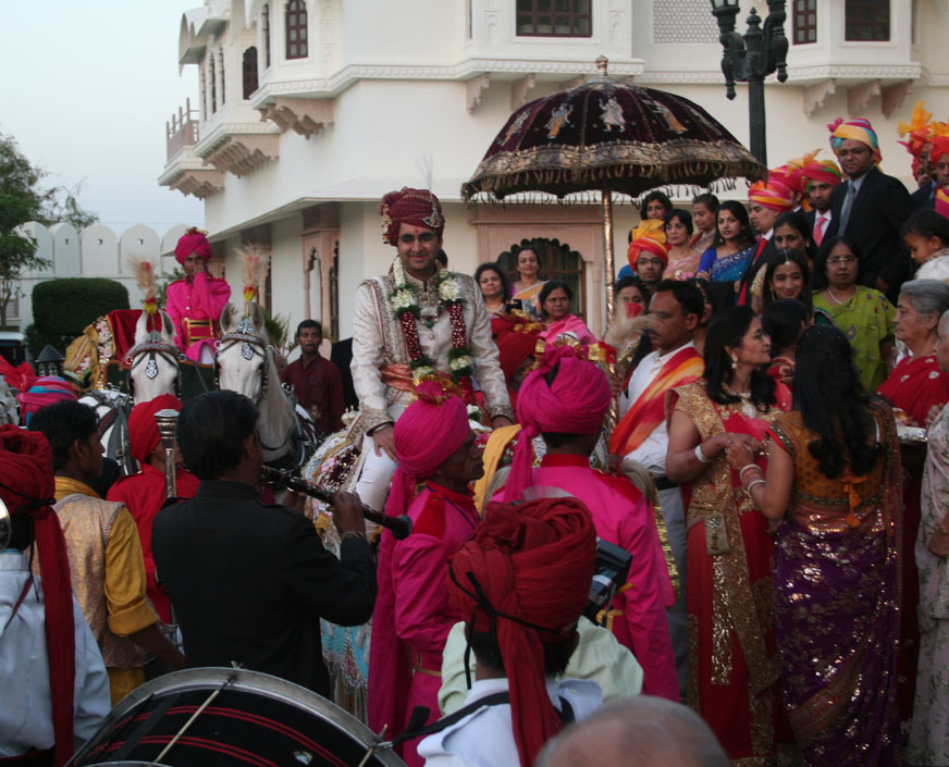 The Shiv Vilas Resort is a beautiful venue for any special occasion. The welcoming girls will be there with showers of rose petals and the traditional Aarti and Tikka ceremony. The groom will alight from the horse and will be garland here. At this time the shehnai will be playing. The venue offers a variety of options, including a garden setting, a lakeside setting, and an open field setting. The groom will be walked to the stage where the bride will be present from before. He will take the seat there alongside the bride. There will be no walk down the aisle, as this is seen as disrespectful to the bride. There will be a traditional ceremony of exchanging of garlands called "jaimala".